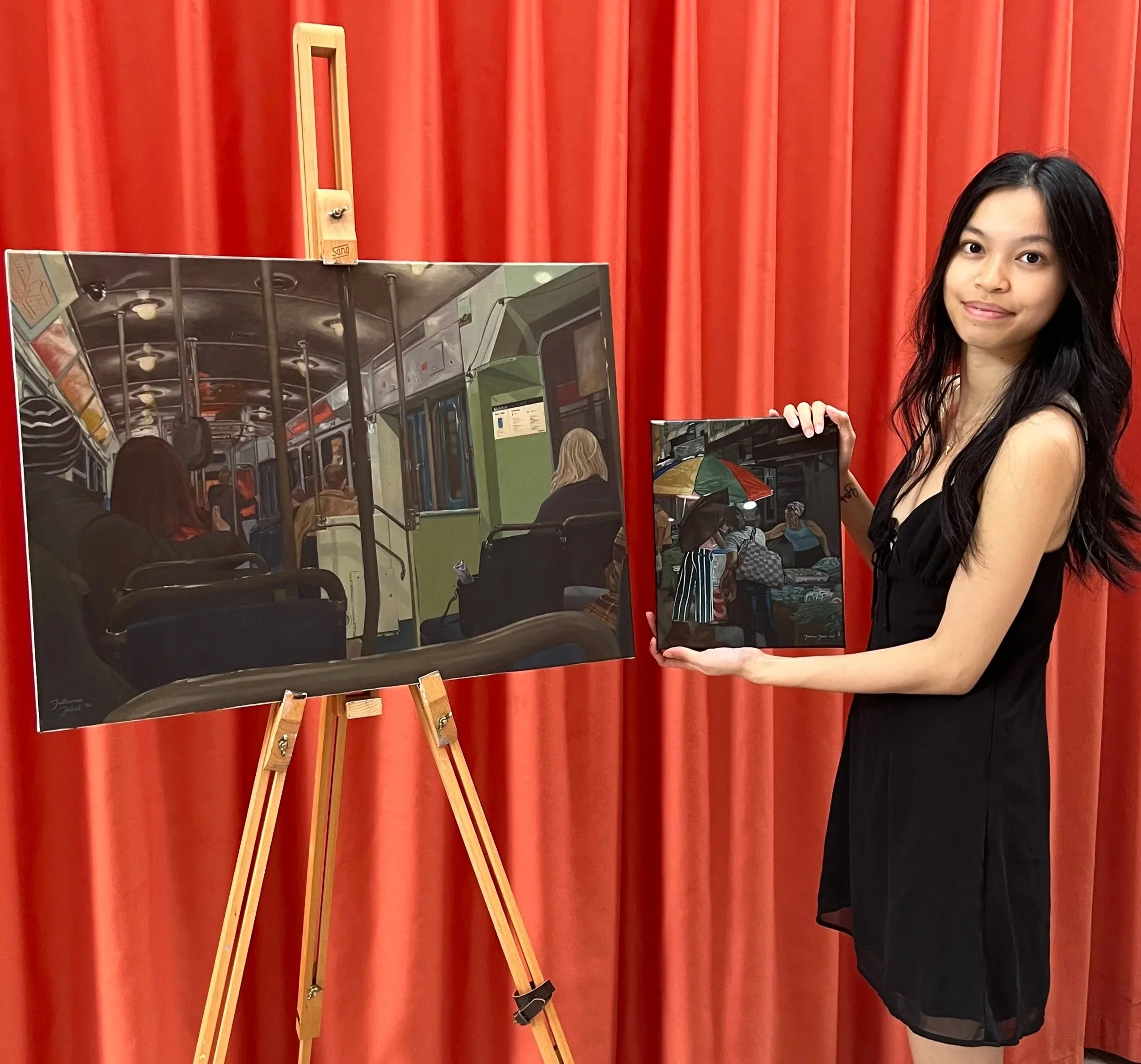 Jullianne “Jullie” Jabol’s artistic journey also began in childhood, shaped by creative influences from her early years in the Philippines to later life in Sweden. Exploring various mediums, she eventually found her place in oil painting at around fifteen, a practice that remains central to her work today. A pivotal shift came during her university years in Gothenburg, where the pace of city life led her to consciously slow down and observe her surroundings, turning her focus toward people and the quiet individuality within everyday moments.